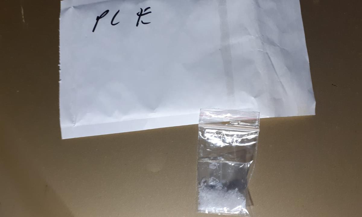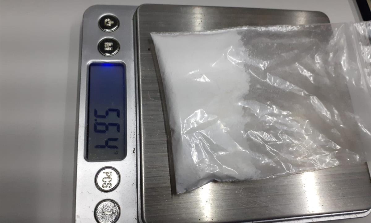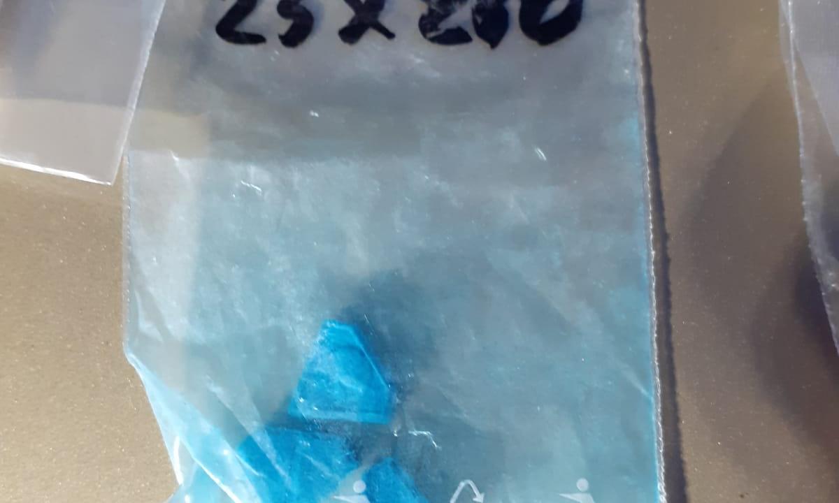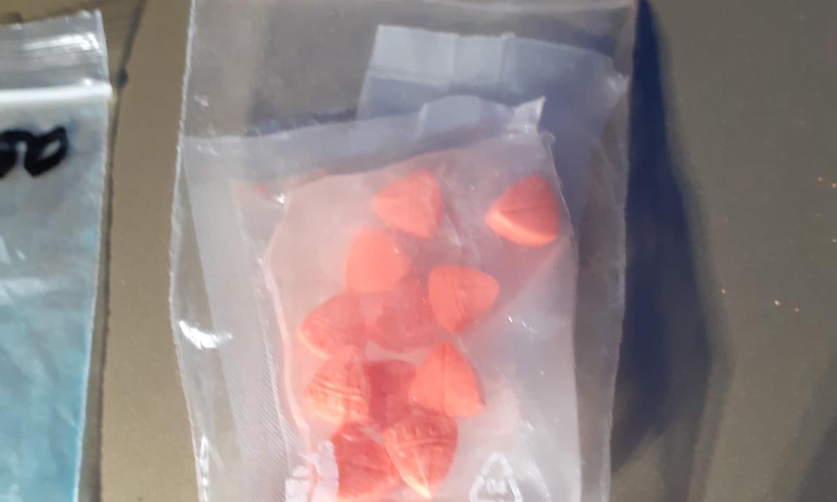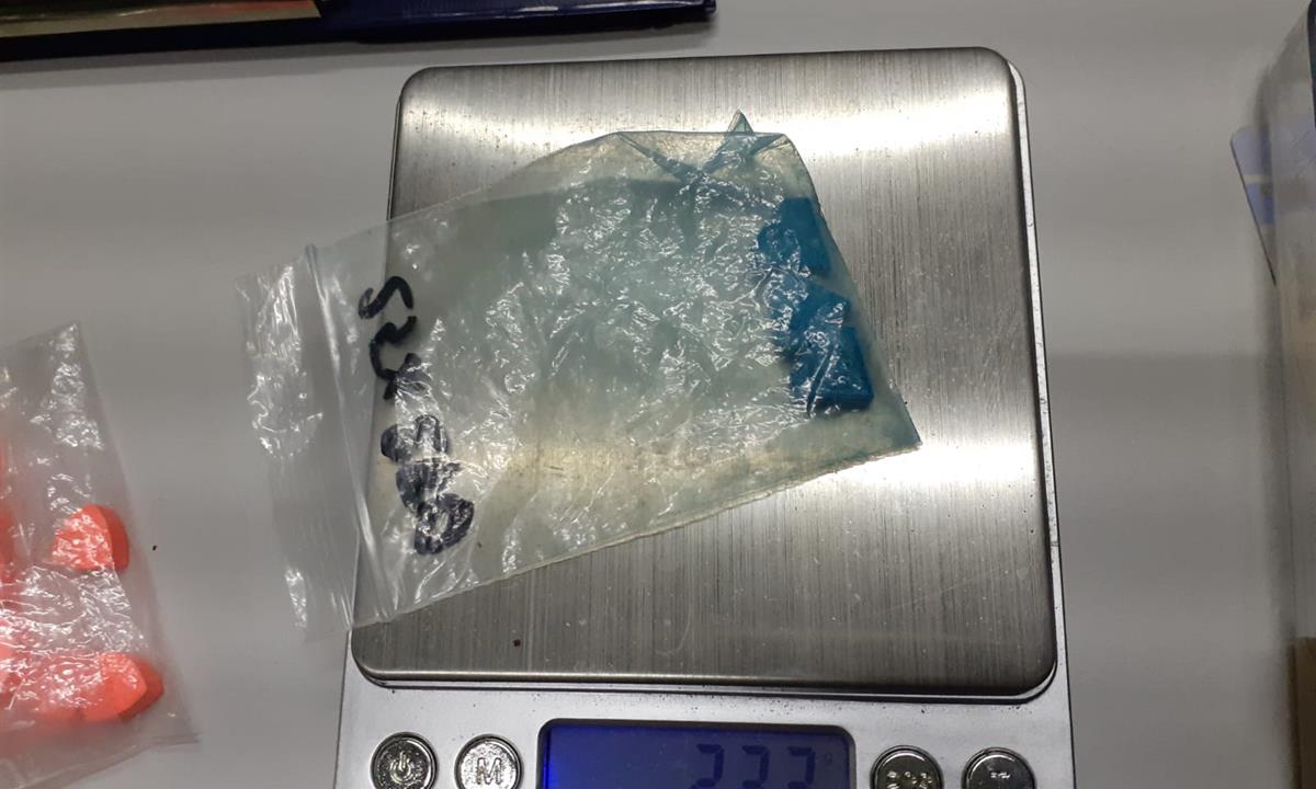 Během kontroly byl ve vozidle nalezen modrý batoh, který obsahoval několik obálek a igelitových sáčků s neznámou krystalickou látkou bílé barvy (dle Ramanova spektrometru se jednalo o metamfetamin a amfetamin - slangově známý jako speed, patřící k podobnému typu syntetických drog jako metamfetamin, pro který se v Česku užívá název pervitin) o hmotnosti 9,67 gramů. Dále to byly igelitové sáčky s krystalickou látkou hnědé barvy o hmotnosti 10,70 gramů a 17 kusů tablet modré a oranžové barvy o hmotnosti 11,47 gramů (dle Ramanova spektrometru se jednalo o MDMA extázi).