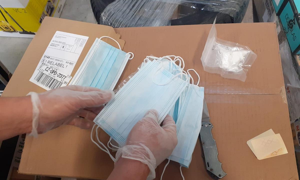 Poštovní zásilka obsahovala roušky, mezi nimiž byly ukryté sáčky s drogou