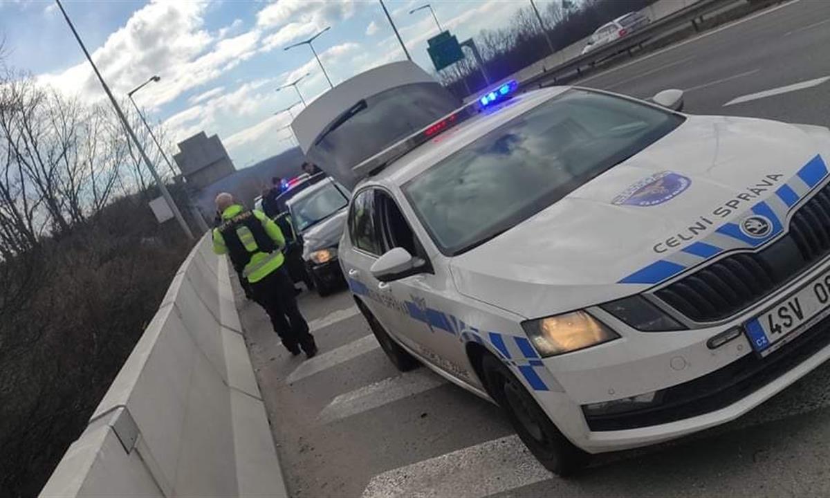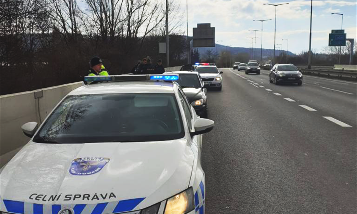 Středočeským celníkům se podařilo zablokovat ujíždějící vozidlo v odstavném pruhu dálnice D10 a za použití hrozby namířenou střelnou zbraní nebezpečného řidiče vytáhli z vozidla a přiložili mu pouta.