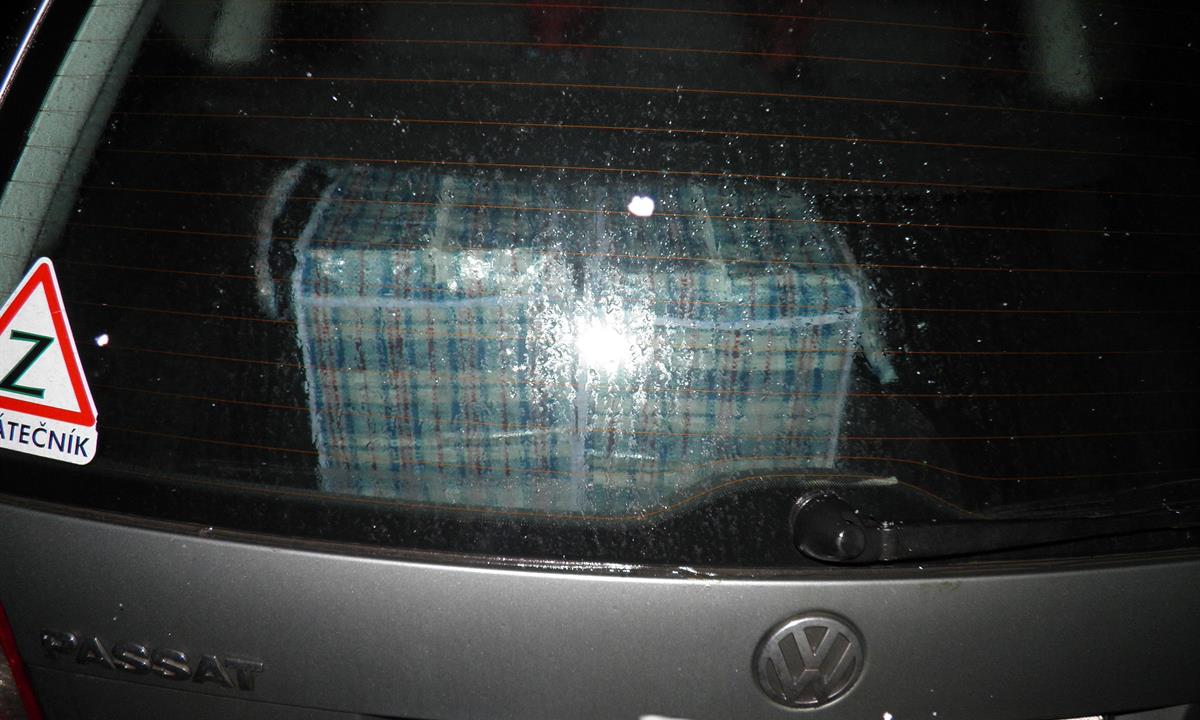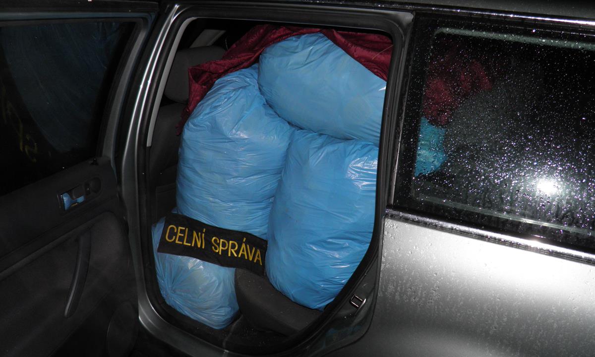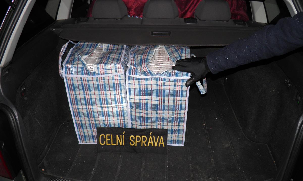Celníci v odložených taškách objevili cigarety značky Classic s ukrajinskými tabákovými nápekami. V zavazadlovém prostoru vozidla odhalili další dvě tašky napěchované cigaretami a uvnitř vozidla pod dekou ukrytých 10 pytlů s tabákem. V celkovém součtu hlídka ve vozidle zajistila 48 tisíc kusů nezdaněných cigaret a 791 sáčků po 150 gramech (tj. 118,65 kg) s tabákem ke kouření zn. Golem, vše bez platných tabákových nálepek. Stát by prodejem zajištěných tabákových výrobků přišel na daních o více než 403 tisíc korun. Jednomu z mužů se podařilo utéct, nicméně jeho totožnost je celníkům známa.