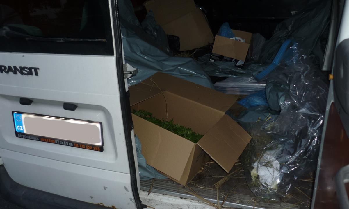 V pondělí ve večerních hodinách zastavila hlídka celníků na komunikaci I/13 u obce Modrá na Děčínsku ve směru Jílové – Libouchec za pomoci světelného terče ke kontrole dodávkové vozidlo Ford transit bílé barvy. Osádka vozidla, kterou tvořili dva muži ve věku 23 a 25 let, byla vyzvána k otevření zavazadlového prostoru. Již při otevření dveří zavětřili celníci nezaměnitelnou vůni marihuany. V krabicích pak objevili 100 kusů rostlin konopí o přibližné velikosti 10 cm, dále sušené stonky rostlin, prázdné pytle od zeminy a krabice od filtračního zařízení. Řidič celníkům sdělil, že se jedná o sazenice marihuany, které údajně vypěstoval pro nemocnou babičku. Drogové testy později tuto drogu potvrdily.