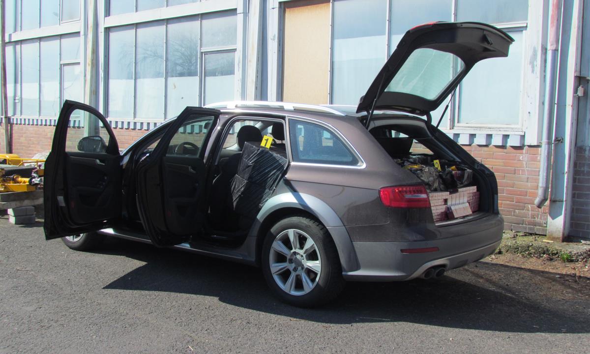 Cigarety převážel čtyřicetiletý Čech ve vozidle Audi A4 české imatrikulace, které si hlídka celníků vytipovala ke kontrole na silnici I/13 u Klášterce nad Ohří na Chomutovsku.