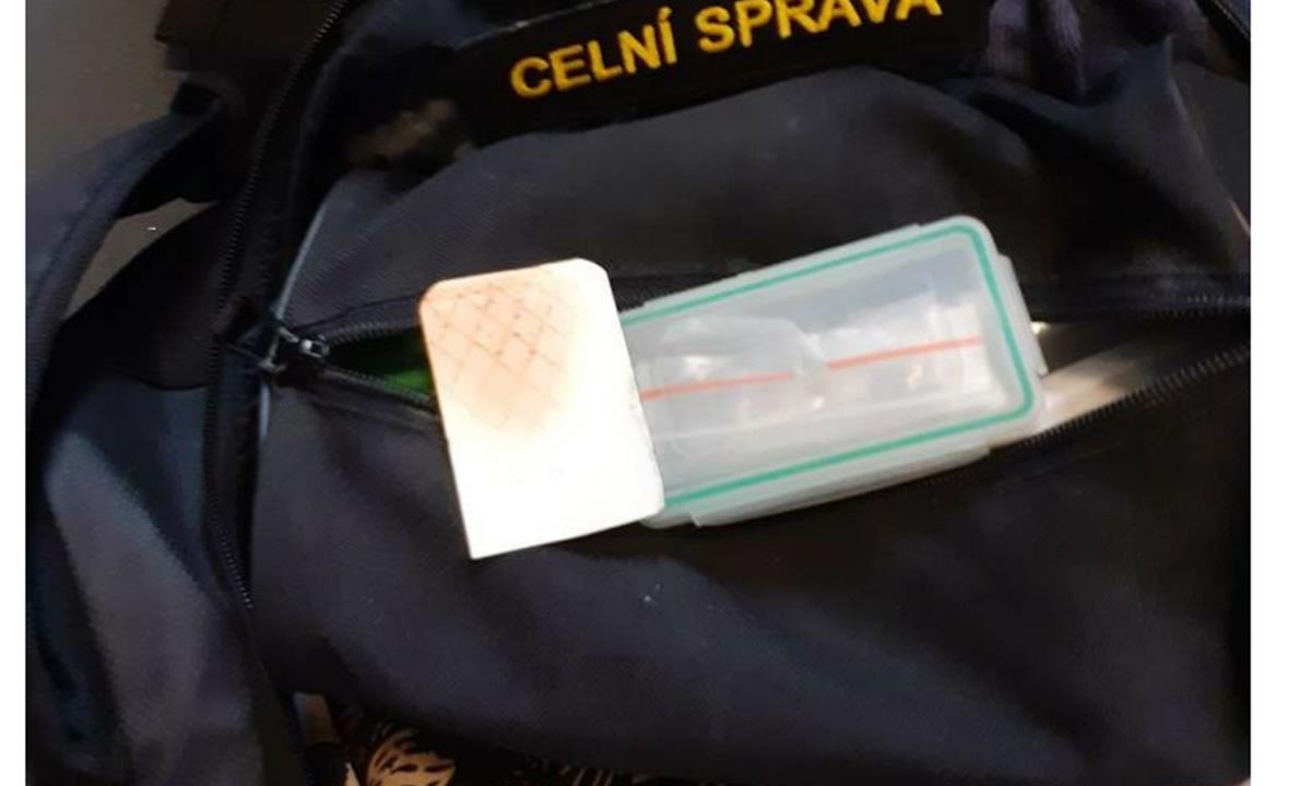O pár hodin později služební pes označil v mezinárodním vlakovém spoji Berliner na trase Praha – Berlín černou sportovní tašku s třemi pruhy, ke které se přihlásil cestující ze Slovenska. V útrobách hygienické taštičky celníci nalezli zatahovací sáček s rostlinnou sušinou (1,53 g), tedy marihuanou a žlutý plastový obal z Kinder vajíčka i s překvapením. Tím byla bílá krystalická látká (4,25 g). Provedený narkotest reagoval pozitivně, a i kontrolovaná osoba potvrdila, že se jedná o kokain.