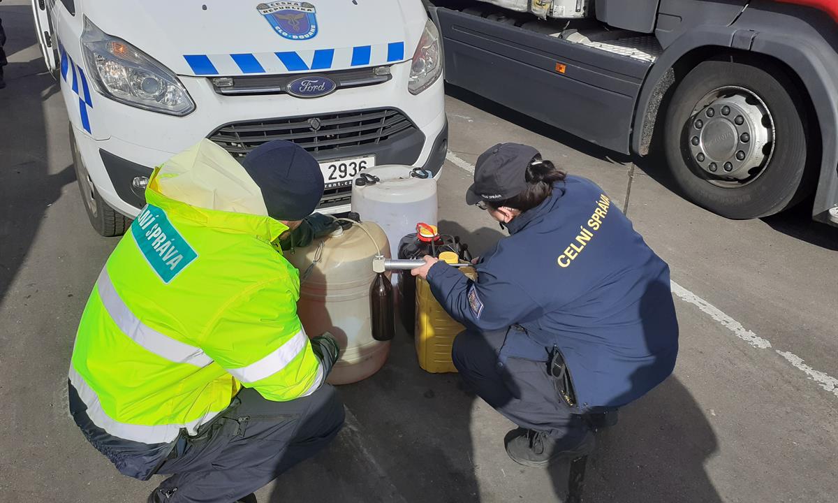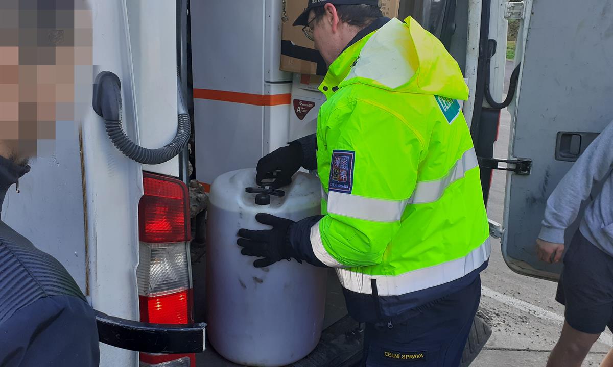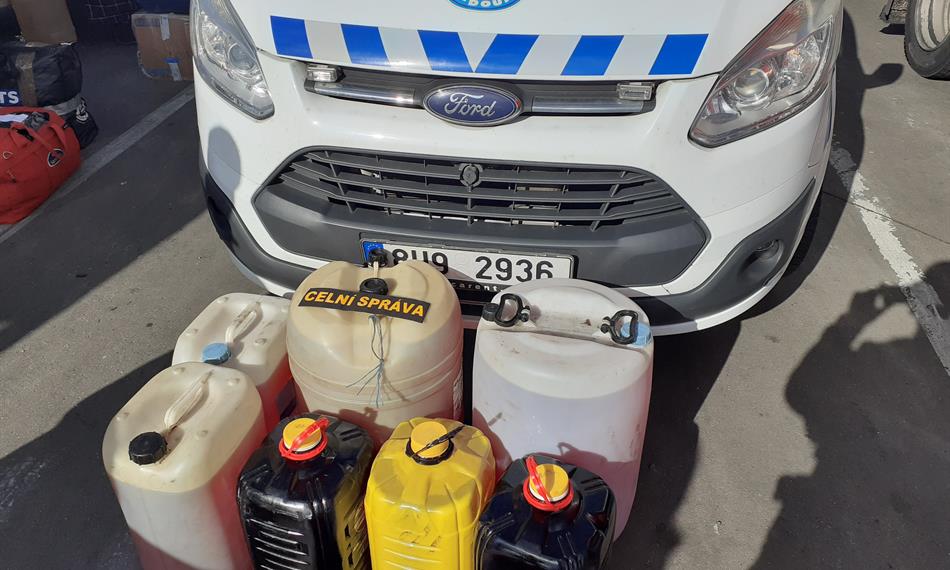 Na dálnici D8 nedaleko Lovosic zastavila hlídka celníků dodávkový vůz Mercedes s rumunskou registrační značkou. Při kontrole nákladového prostoru vozidla celníci objevili jeden dvacetilitrový a dva šedesátilitrové plastové barely. Uvnitř se nacházela načervenalá kapalina s typickým zápachem motorové nafty. Dalších pět plastových kanystrů, (dva o objemu 25 litrů a tři o objemu 20 litrů) naplněné stejnou kapalinou celníci našli v obytném přívěsu. Protože řidič nepředložil žádný doklad prokazující řádné zdanění vybraných výrobků nebo doklad o přepravě, celníci zboží zajistili. Řidič bude muset také doplatit dlužnou spotřební daň.