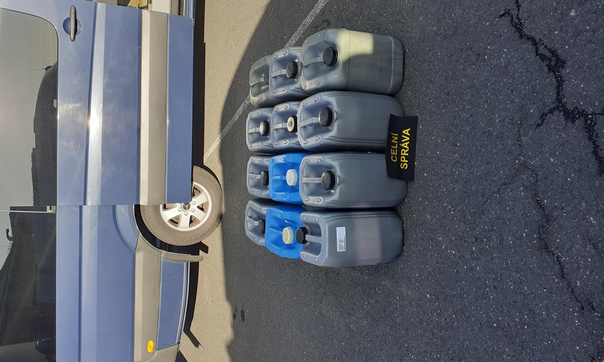 Jen o pár hodin později si hlídka vytipovala ke kontrole další rumunskou dodávku, převážející na přívěsu osobní vozidlo. V nákladovém prostoru dodávky celníci nalezli 12 plastových 20 litrových barelů naplněných načervenalou kapalinou s typickým zápachem motorové nafty. Barely byly důmyslně ukryté v černých igelitových pytlích a ještě v kartonových krabicích. Jelikož řidič nepředložil hlídce žádný doklad prokazující řádné zdanění minerálních olejů nebo jejich oprávněné nabytí za ceny bez daně, celníci obsah barelů zajistili. Kromě propadnutí minerálních olejů ve prospěch státu bude muset řidič doplatit uniklou spotřební daň ve výši 2.338 korun. Hlídka také zjistila, že má řidič v aplikaci CEPAN (Centrální evidence přeplatků a nedoplatků) veden nedoplatek ve výši 1.000 korun. Řidič dluh pod hrozbou odebrání registračních značek celníkům na místě raději uhradil.