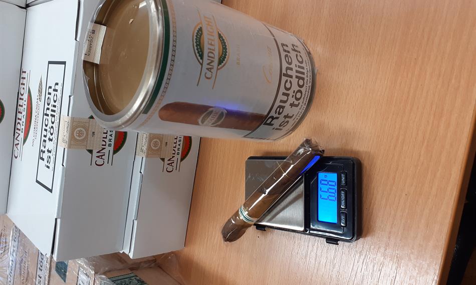 Řidič, na dotaz hlídky, zda převáží nějaké zboží, cigarety či alkohol, odpověděl, že veze kartonové krabice, ale neví, co v nich je. Celníci na kontrolu vozidla nasadili služebního psa, specialistu na vyhledávání tabákových výrobků. Artuš označil v nákladovém prostoru hned několik krabic, ve kterých celníci objevili doutníky zn. Candlelight Brazil, Candlelight Club, Candlelight Corona, Candlelight Sumatra a dále zn. Jose L. Piedra a zn. Meine 60er Sumatra, s německými tabákovými nálepkami. Doutníky byly balené v krabičkách, plechových dózách i dřevěných boxech a v konečném součtu jich celníci napočítali 8262 kusů.