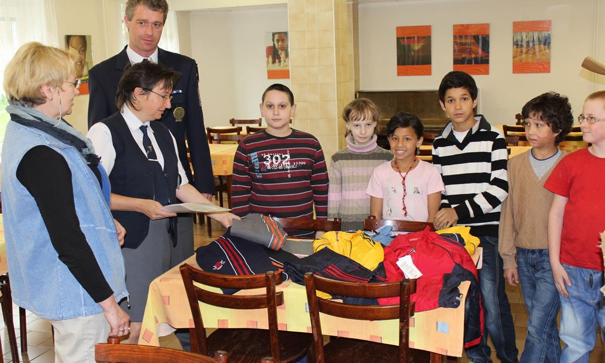 Sto dětských mikin, 200 párů dívčích legín, 500 párů ponožek a 100 párů podkolenek s padělanými markanty světových značek předali zástupci Celního úřadu pro Zlínský kraj ředitelce Základní školy praktické a základní školy speciální v Bystřici pod Hostýnem paní Jaroslavě Bezděkové, s kterou celní správa spolupracuje již od roku 2006.