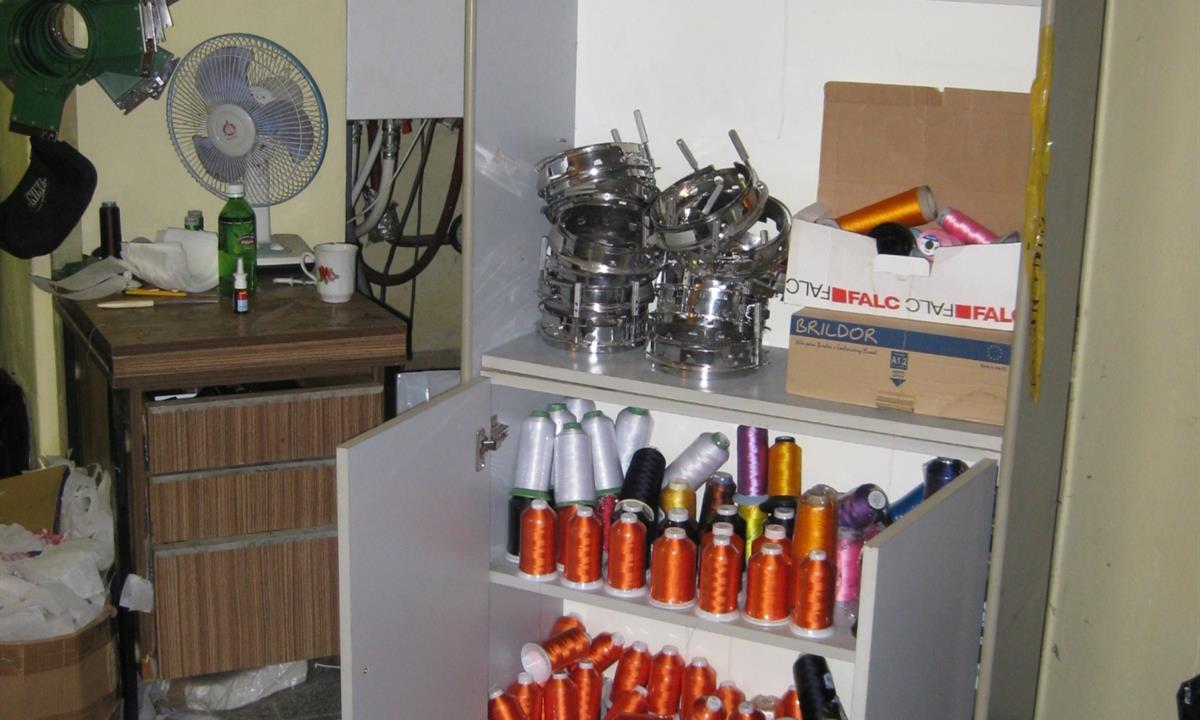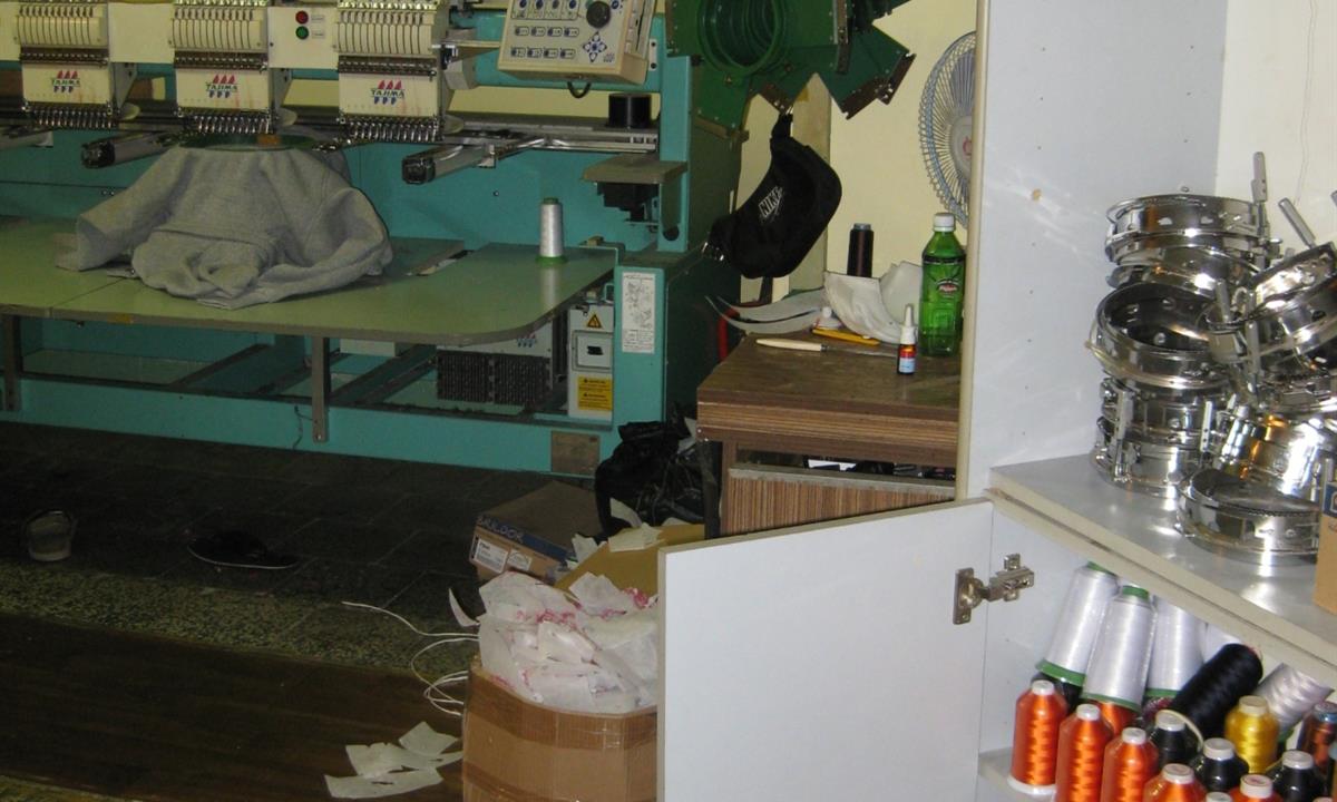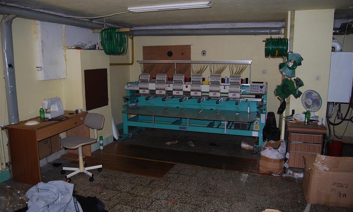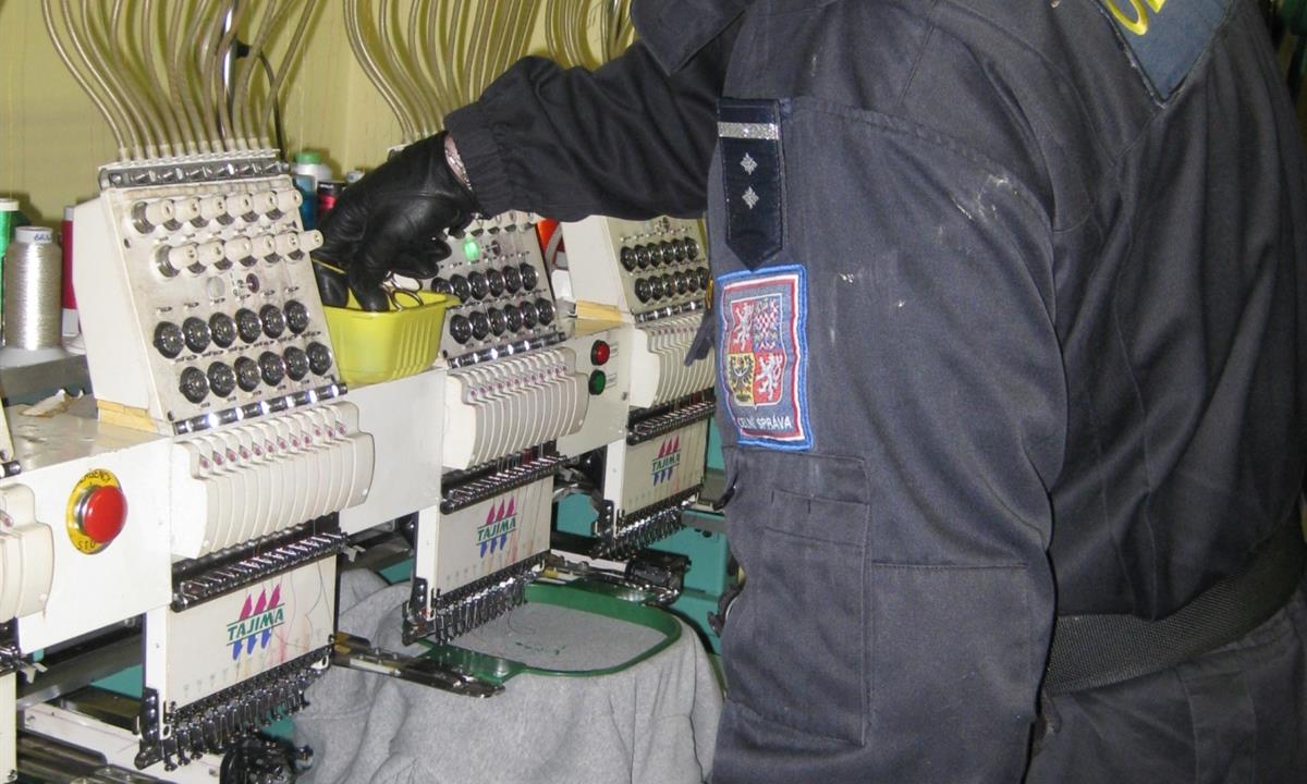 Ve sklepních prostorách celníci zajistili velkokapacitní šestihlavý vyšívací stroj, diskety s vyšívacími programy a rámy k upínání různých druhů textilu. Podle náročnosti vzoru mohl stroj produkovat kolem 150 kusů padělků za hodinu. Dále celníci našli dva přenosné šicí stroje, nášivky s logy ochranných známek, cívky nití a textil připravený k našívání. V tutéž dobu probíhala také domovní prohlídka v Brně v bytě organizátora skupiny. Tam celníci zajistili písemnosti týkající se nákupu a prodeje zboží, stolní počítač, notebook, diskety s programy a cívky nití.