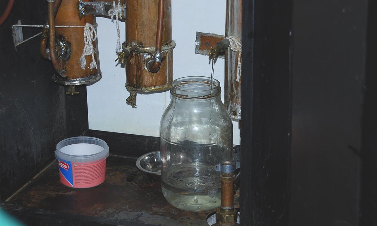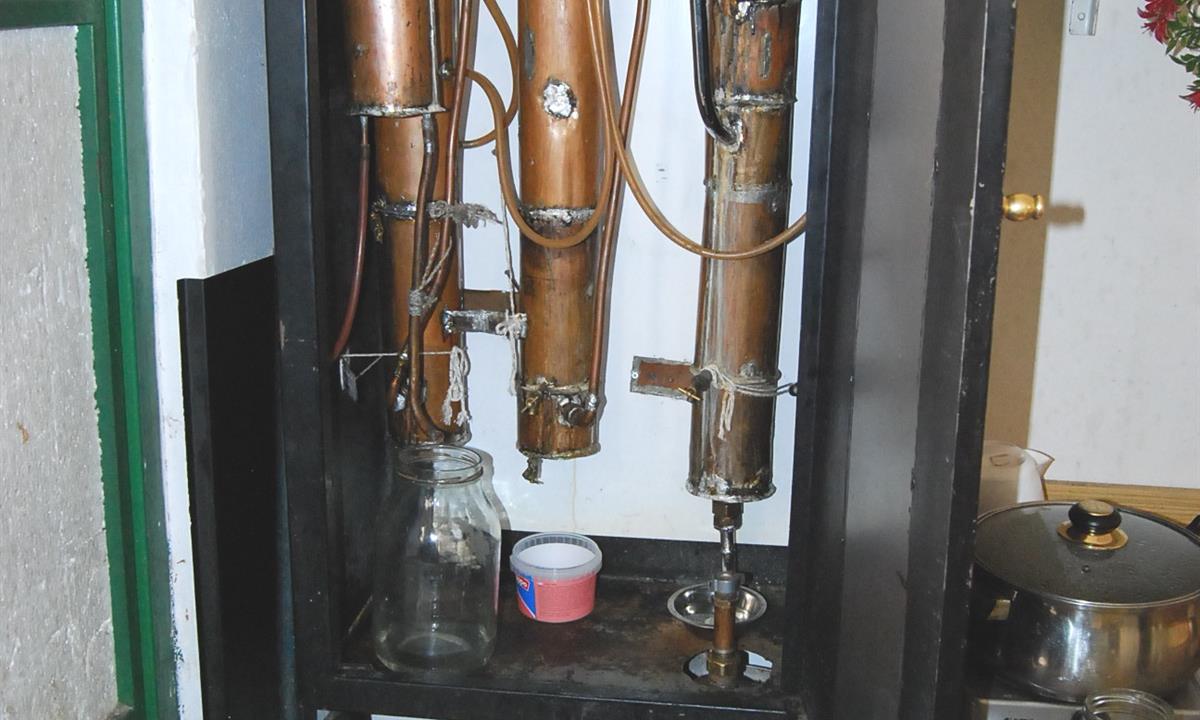 Při kontrole provozovny celníci našli ve skladových prostorách přibližně 13 litrů lihovin v plastových lahvích, které nebyly označené kontrolní páskou, a majitel nebyl schopen prokázat jejich zdanění. Následně celníci objevili tři padesátilitrové nádoby s ovocným kvasem, a proto se rozhodli podrobit místo důkladné kontrole. Zjistili, že plechová skříň na zdi ukrývá po domácku vyrobené destilační zařízení, které v době kontroly bylo ještě horké.