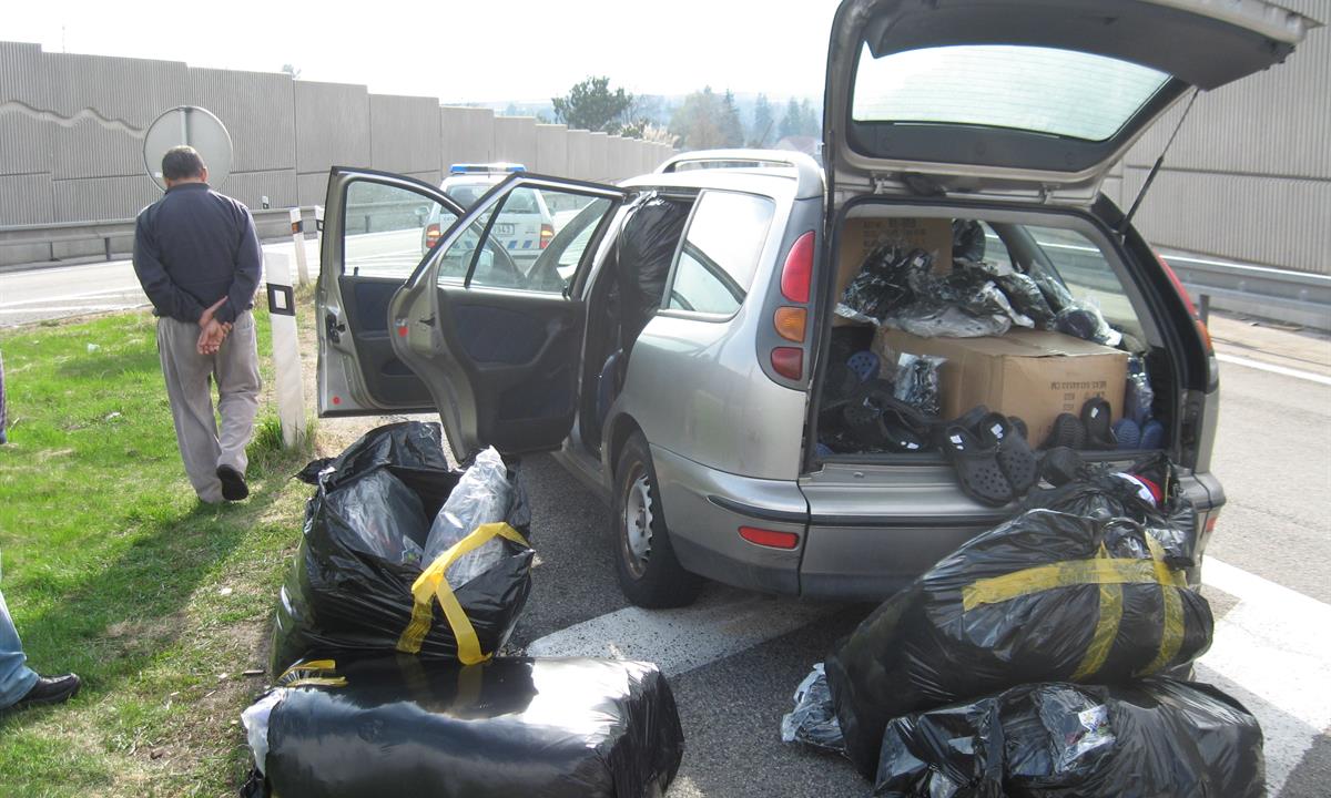 V úterý odpoledne brněnští celníci kontrolovali vozidla na dálnici D1 na odpočívadle „Devět křížů“.  Při kontrole si všimli projíždějícího plně naloženého vozu Fiat Marea kombi s rakouskou státní poznávací značkou. U sjezdu z dálnice na Ostrovačice se jim podařilo vůz zastavit. Osádku vozu tvořily dvě osoby – Rakušan a Ind. Celníci zkontrolovali převážený náklad, který tvořilo převážně textilní zboží a obuv označené ochrannými známkami. Podle vyjádření zástupců majitelů ochranných známek se jednalo o padělky. Prodejní hodnota originálního zboží by činila přibližně 880.000 korun.