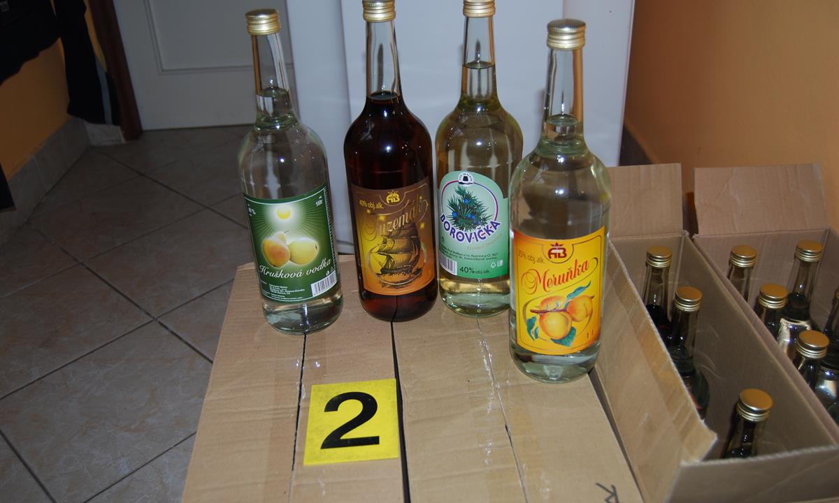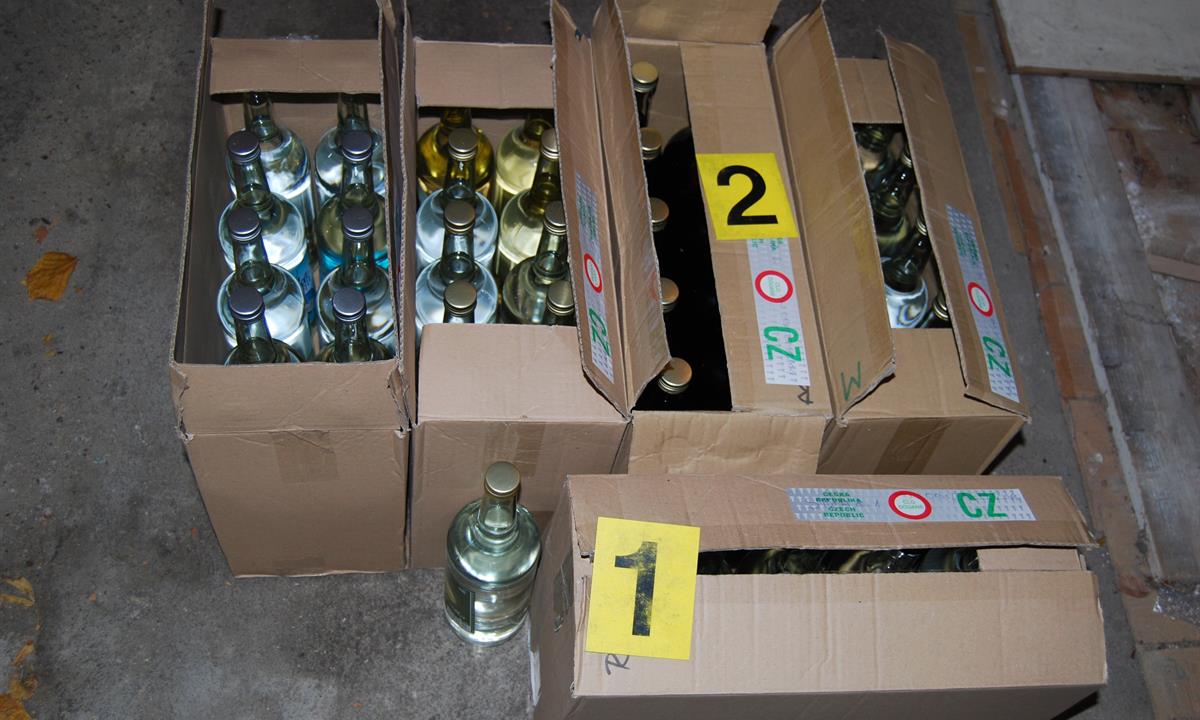 V domě celníci našli 472 litrových lahví různých druhů lihovin označených např. jako Meruňka, Tuzemák, Vodka jemná atp. Žádná z nich nebyla označena kontrolní páskou, a proto byly zajištěny. Obsah etanolu, který byl na lahvích uveden v objemu 40 %, bude předmětem analýzy.