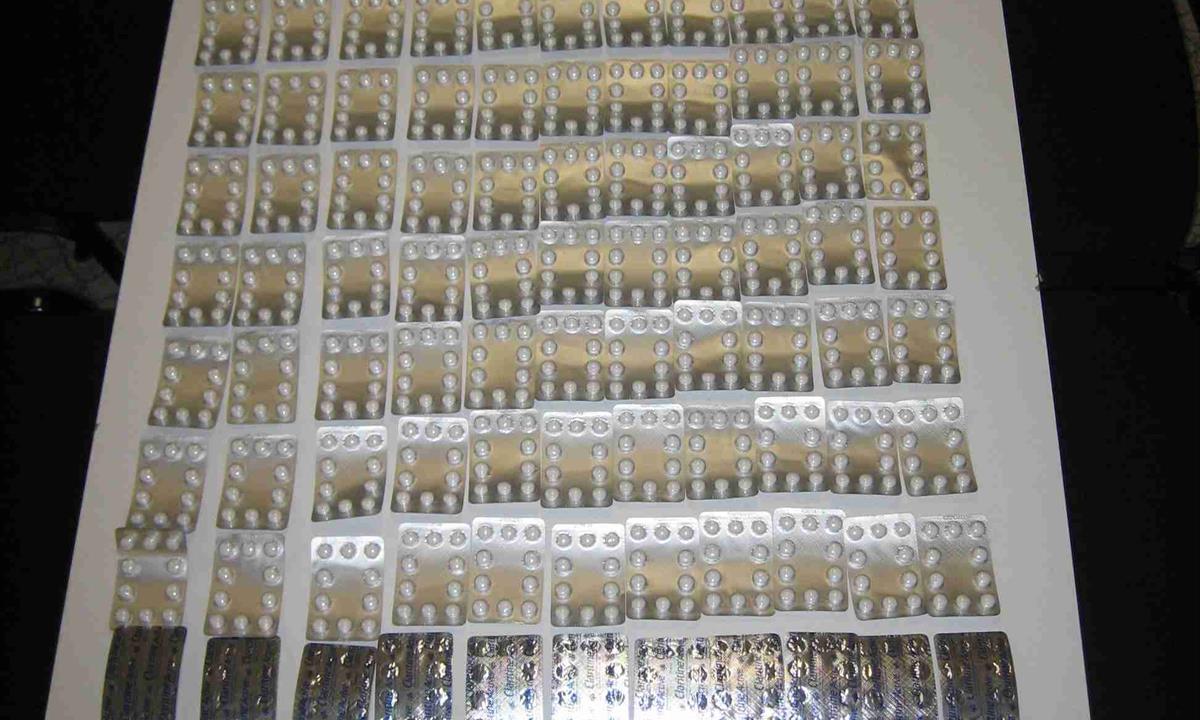 V kabině fialového mitsubishi označila služební fena Hexa místo na zadním sedadle, kde byla položená deka a přes ni osobní svršky. V dece pak našli ukryté léky, plata bez krabiček, celkem 1330 tablet Claritine Active. Každá tableta obsahuje 120 mg pseudoefedrinu, látky, kterou drogově závislí zneužívají k výrobě pervitinu. V kabelce dívky vzápětí objevili tři prázdné injekční stříkačky. Oba Češi přesto svorně tvrdili, že jim léky nepatří.