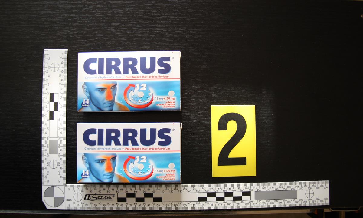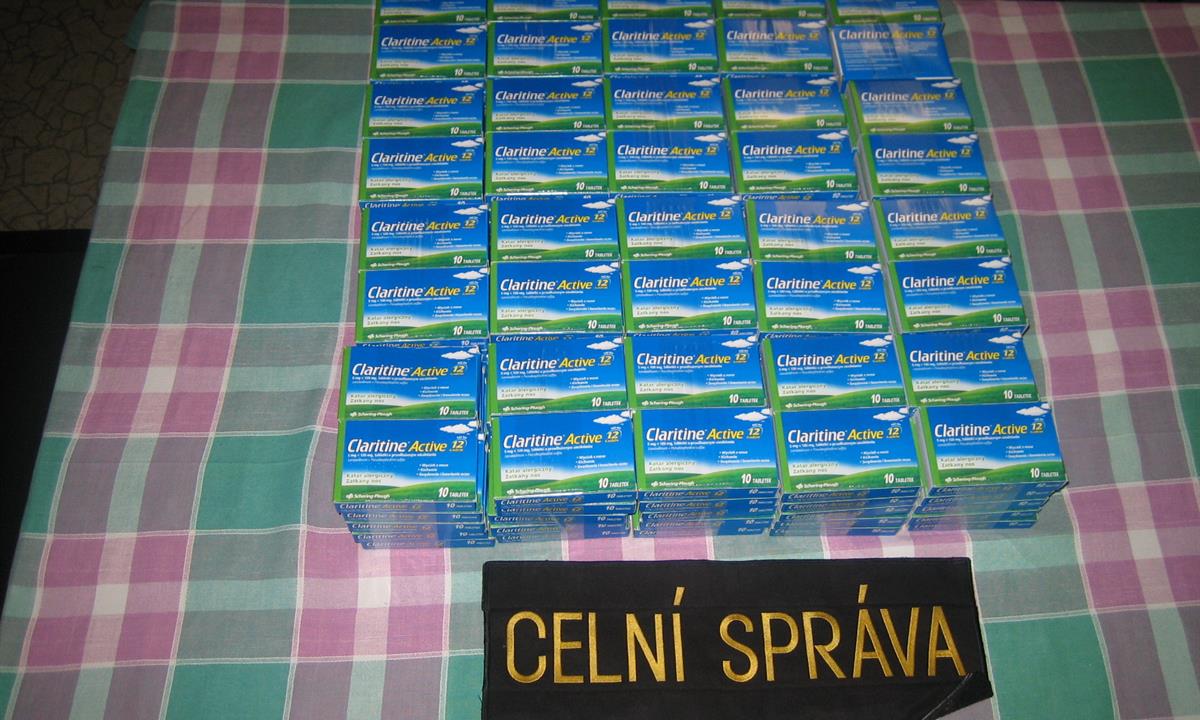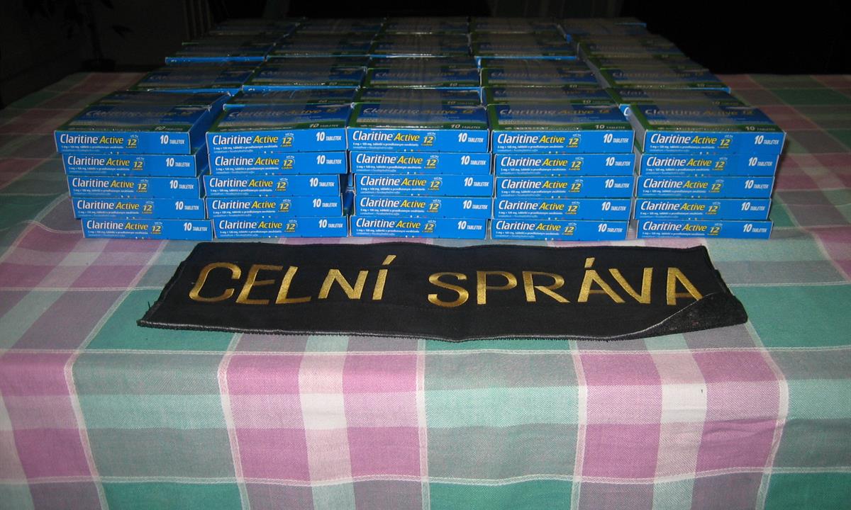 V minulém týdnu se léky k výrobě pervitinu pokoušeli převézt dva muži, 29 a 30 let, na Ústeckoorlicku. Hlídka mobilního dohledu zastavila jejich vozidlo ke kontrole v obci Dolní Boříkovice. Celníci v zavazadlovém prostoru modré Škody Octavia našli sportovní tašku a uvnitř 2000 tablet léku Claritine Active s deklarovaným obsahem 120 mg pseudoefedrinu v jedné tabletě.