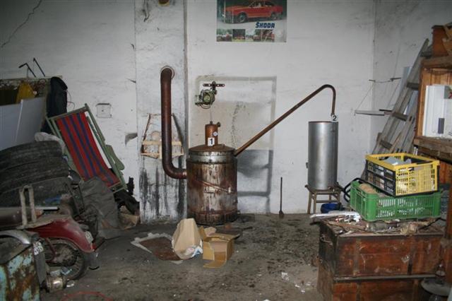 ve večerních hodinách, odhalili nedovolenou výrobu alkoholu v podobě ovocných destilátů.