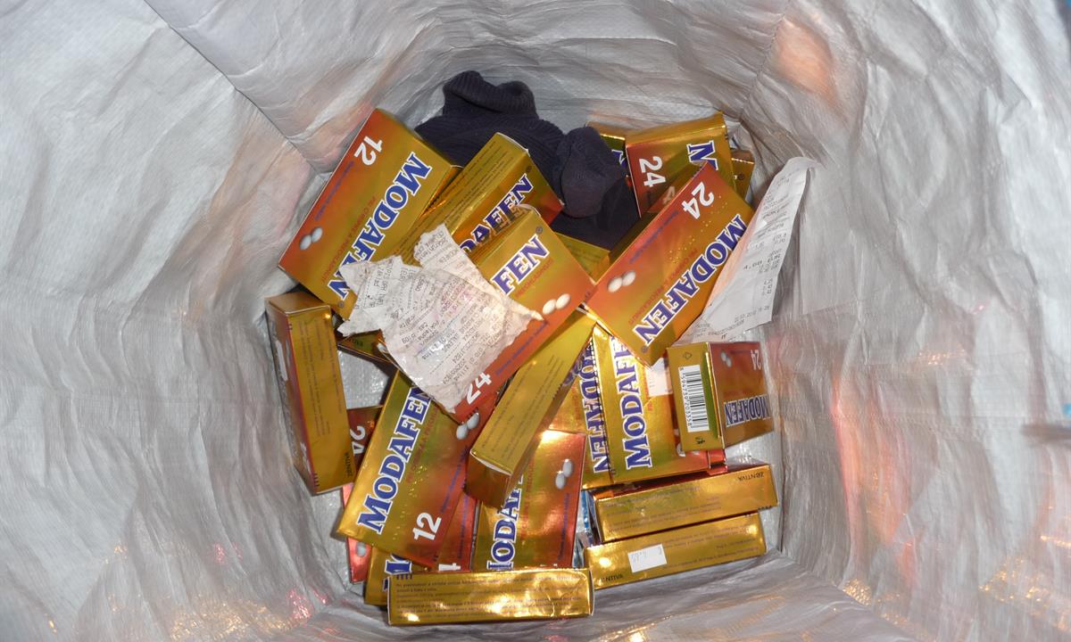 Ve vozidle odhaleno 516 tablet Modafenu a na tržnici v obci Český Těšín zajištěno téměř 400 litrů alkoholu.