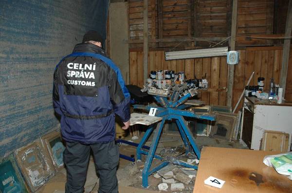 V objektu bývalé továrny ESKA v Chebu celníci včera provedli se souhlasem státního zástupce prohlídku, při které objevili výrobnu padělků.