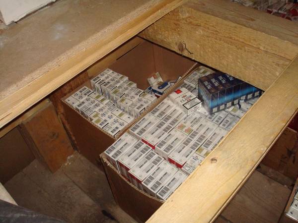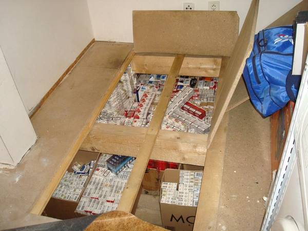 Cigarety různých značek bez kolků nebo s falešnými kolky byly ukryty na různých místech v domě. Část cigaret byla nalezena ve vybudované skrýši pod podlahou.
