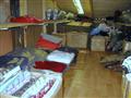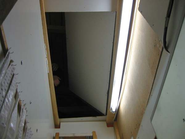 Skrytý sklad se nacházel v zadní části konstrukce stánku a vstup maskovanými dveřmi do těchto prostor zajišťoval elektrický spínač instalovaný skrytě na spodní straně jedné z polic s vystaveným zbožím. Padací víko vstupu do půdních prostor skladu otvorem v dělící stropní stěně bylo ovládáno za pomoci ocelového lana ze střechy stánku.