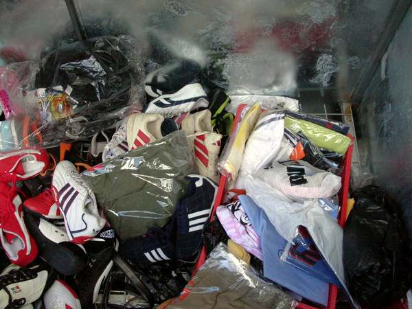 Podezřelá osoba byla v době příchodu kontrolní skupiny spatřena v přilehlém místě tržiště při odebírání textilního zboží z právě odemknuté ocelové bedny. Ihned po výzvě celníků k prokázání totožnosti se trhovec vydal na útěk, při němž rovněž odhodil klíče od předmětné bedny se zbožím. Po oběhnutí téměř celé tržnice se na opakované výzvy zastavil a následně celníkům předložil doklad své totožnosti. Odhozené klíče celníci vyhledali a ověřili jejich příslušnost k zámkovému mechanismu bedny. Její prohlídka potvrdila podezření na skladování a prodej výrobků porušujících předpisy ve vztahu k uvádění zboží na spotřebitelský trh. Uvnitř bylo nalezeno celkem 160 ks zboží označeného logy a symboly světových značek, které by mohlo porušovat práva majitelů ochranných známek. Jednalo se o textilní výrobky a obuv, které byly ve svém designovém zpracování opatřeny označením zaměnitelným např. s ochrannou známkou „adidas“ nebo „Puma“.