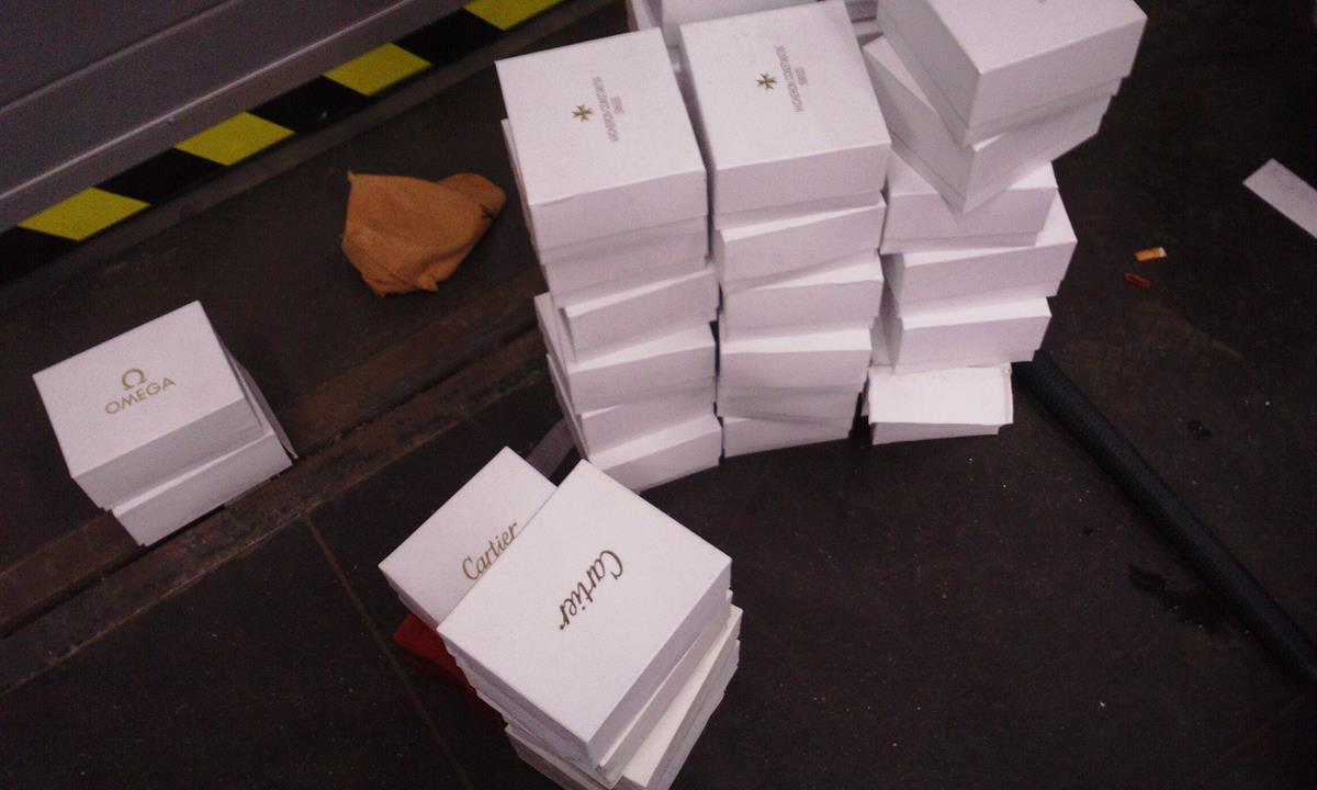 Padělky známých luxusních hodinek Rolex, Breitling, Tag Heur, Rado, Hublot, Glass Hute a mnoha dalších jsou při nelegálním prodeji nabízeny za cca 500,- až 1 500,- korun. Cena originálů se pohybuje v řádech statisíců korun. Škoda způsobená majitelům práv k ochranné známce tak přesahuje dvě miliardy korun.