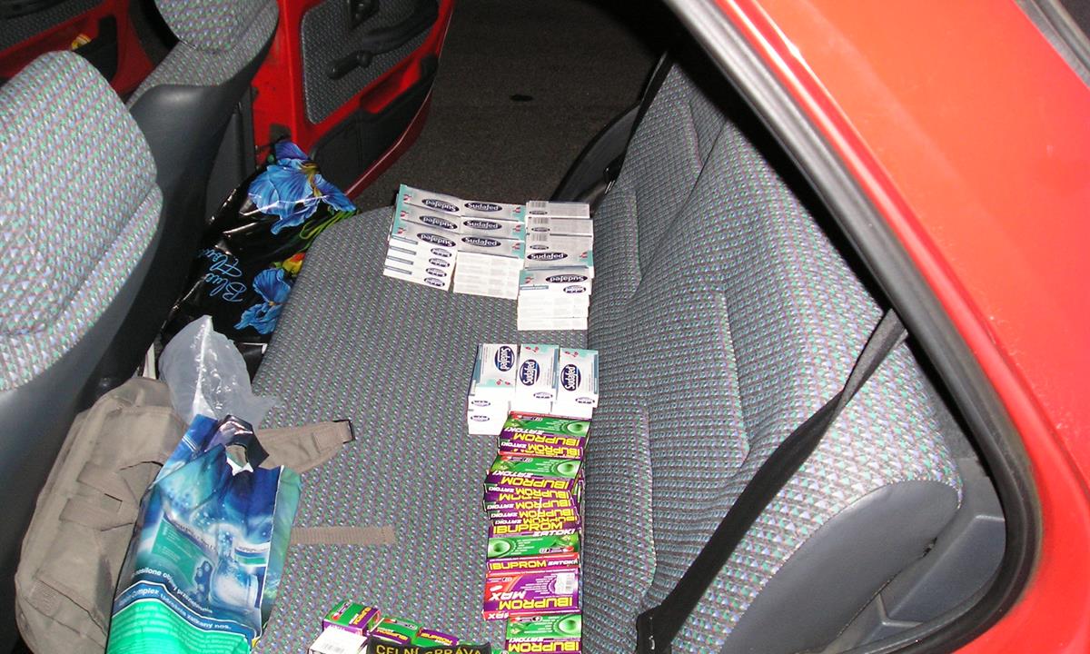 V blízkosti Hrádku nad Nisou si vytipovala a následně zastavila ke kontrole osobní vozidlo zn. Peugeot registrační značky Ústeckého kraje. Pětadvacetiletý řidič a jeho spolujezdkyně se vraceli z Polska, kde byli na nákupech. Nasazený služebním pes Benji, specialista na vyhledávání omamných a psychotropních látek, označil zadní část vozu. Celníci na zadním sedadle nalezli v igelitové tažce 44 kusů balení léku Sudafed. Další balení léků odhalili v kabelce a batohu zakrytém bundou. Celkem ve vozidle objevili 672 tablet léku SUDAFED a 450 tablet léku IBUPROM.