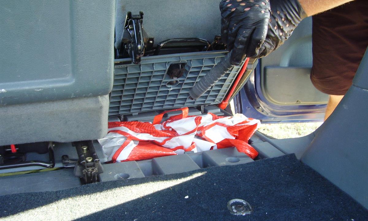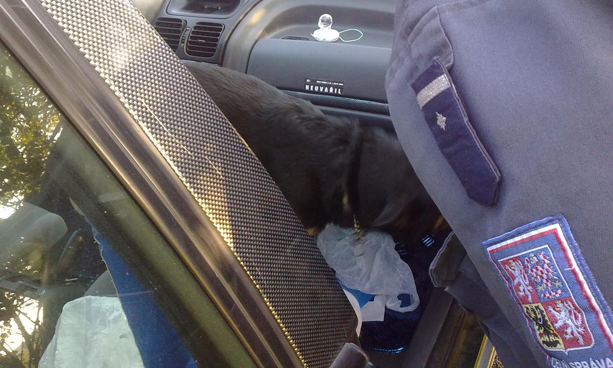 Nejprve si celníci vytipovali ke kontrole vozidlo Renault Laguna. Osádku tvořili dva muži ve věku 27 a 34 let z Mostecka.  V odkládací kapse dveří si hlídka povšimla většího množství blistrů s léky, a tak přistoupila k důkladnější prohlídce.  Nasazený služební pes Robin - specialista na vyhledávání omamných a psychotropních látek označil krom jiného i spolujezdce. Ten ukrýval v ponožce 210 ks vyloupaných tablet. Celníci v ní dále objevili i zatahovací sáček s krystalickou látkou o hmotnosti 1,1 gramu. Orientační zkouška narkotestem prozradila, že se jednalo o methamphetamin resp. pervitin. Celkem bylo nalezeno 614 tablet léků s označením Claritine, Clarinase a Cirrus.