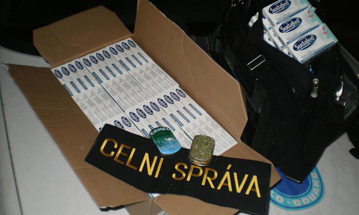 Krátce po šestnácté hodině vytipovala a následně zastavila mobilní hlídka celníků ke kontrole v obci Kunratice u odbočky na obec Heřmanice osobní automobil Škoda Felicia červené barvy s pražskou registrační značkou. Osádku tvořili dva muži ve věku 37 a 41 let. Celníci v zavazadlovém prostoru nalezli kartonovou krabici, ve které objevili 144 ks balení léku Sudafed. Dalších 33 ks balení léku bylo odhaleno v igelitové tašce. Uvedený lék, který není registrovaný pro prodej v České republice, obsahuje v každé tabletě 60 mg látky pseudoefedrin, která je zneužívána k výrobě pervitinu. Muži údajně medikament nalezli vedle stánku na tržnici v obci Sieniawka v Polsku. Nasazený služební pes Robin pak ještě označil ve vozidle místo mezi sedadly. Celníci následně objevili plechovou krabičku a v ní 6,7 gramů látky rostlinného původu – marihuany.