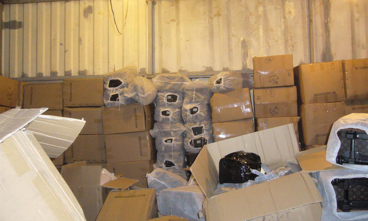 Následná důkladná kontrola obsahu krabic ukázala, že se v nich nachází padělky značky LOUIS VUITTON (7 301 kabelek, 772 toaletních souprav, 1 966 peněženek a 1 301 cestovních tašek) a značky BURBERRY (456 kabelek).