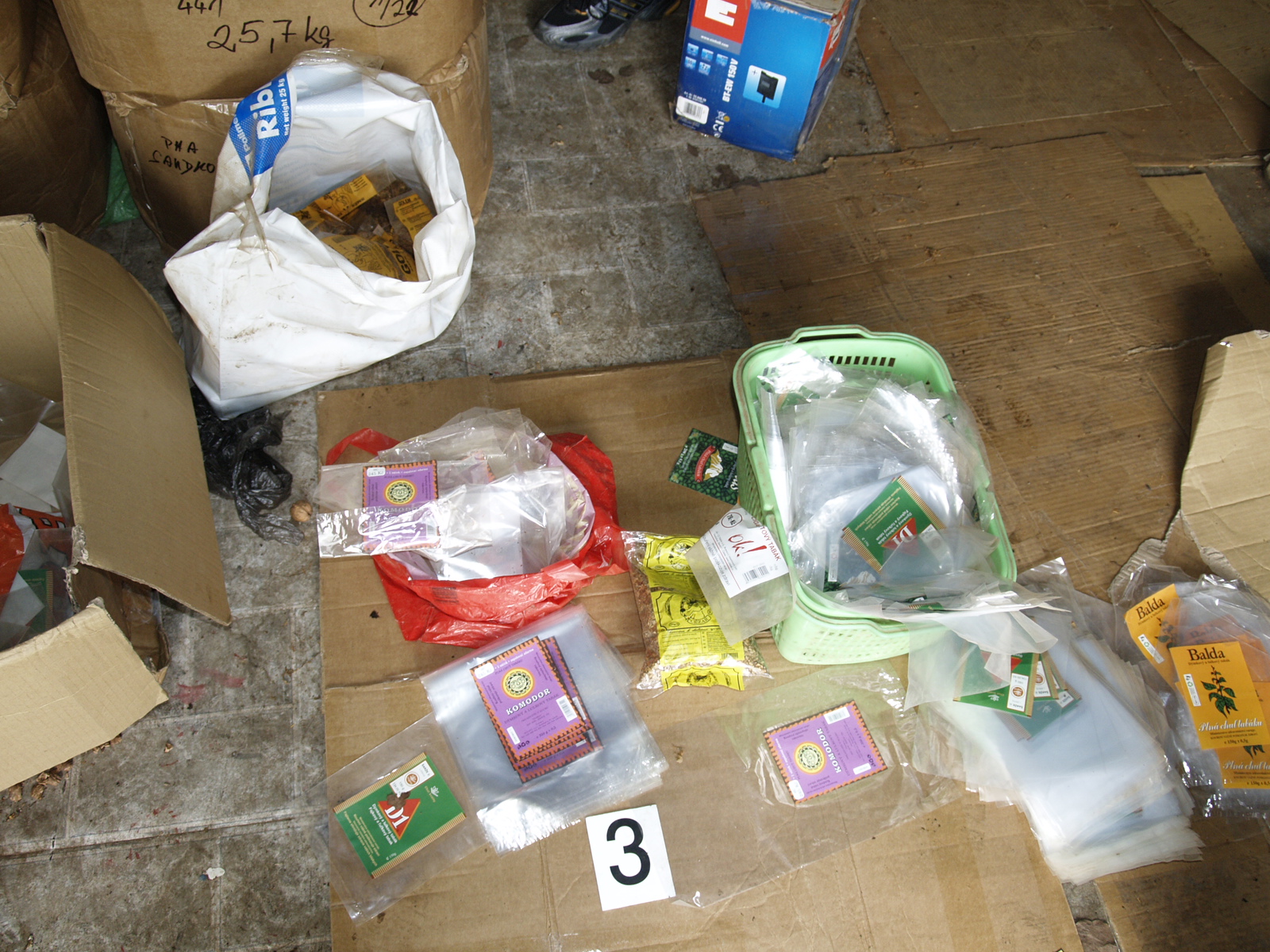 V rámci celé akce bylo zajištěno rozsáhlé množství důkazního materiálu. Jednalo se zejména o 52 tun tabákových listů určených k výrobě řezaného tabáku a cigaret, přibližně 2 tuny obalového materiálu (obaly na řezaný tabák, kartony a krabičky na cigarety), vyrobené cigarety v počtu 268 000 kusů, 10 tun zpracovaného cigaretového tabáku, 45 tisíc kusů padělaných cigaretových kolků, stroj na řezání tabáku, přípravek na plnění cigaret do krabiček a další. Mimo jiné bylo nalezeno kompletní zařízení pro hydroponické pěstování konopí, jedna funkční pěstírna konopí, která obsahovala 1767 rostlin konopí, 1 kg metamfetaminu, ale také několik set kusů oblečení neoprávněně označeného ochrannými známkami.