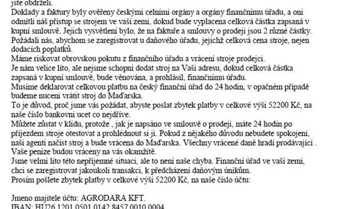 z Maďarska. Podvodníci opět použili pro komunikaci se zákazníkem e-maily,