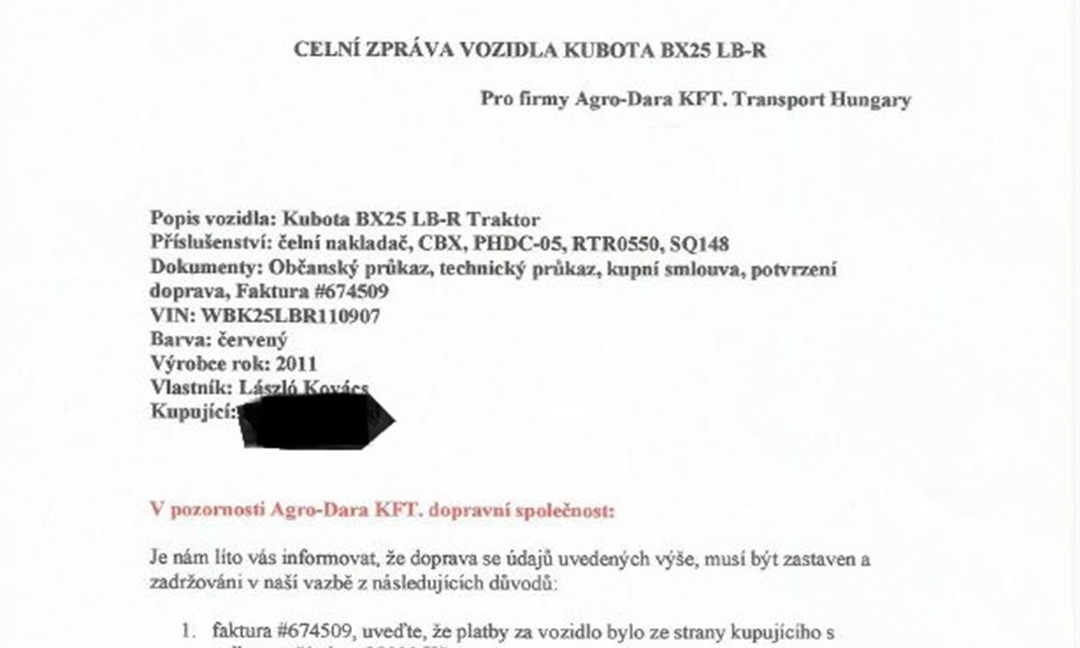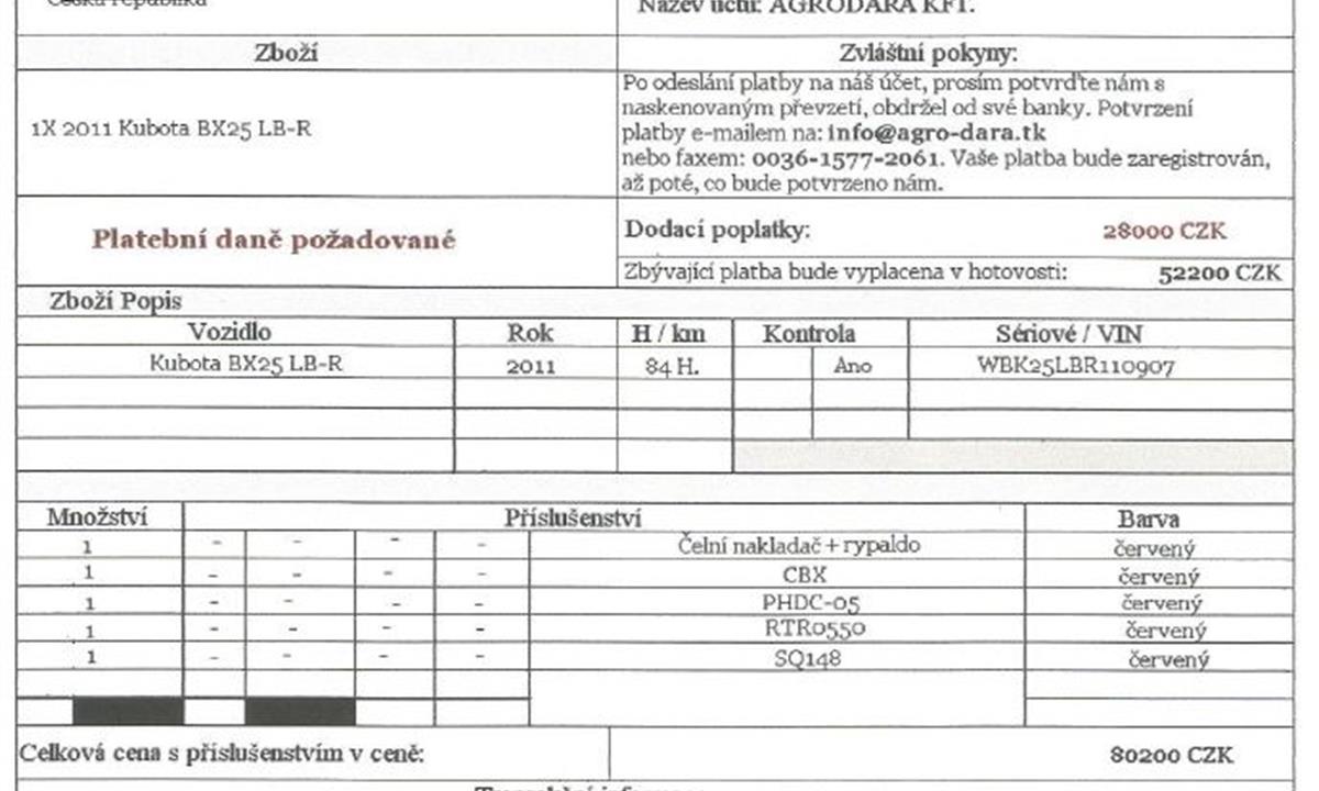 podvod znova objevil v souvislosti s koupí a dovozem vozidla