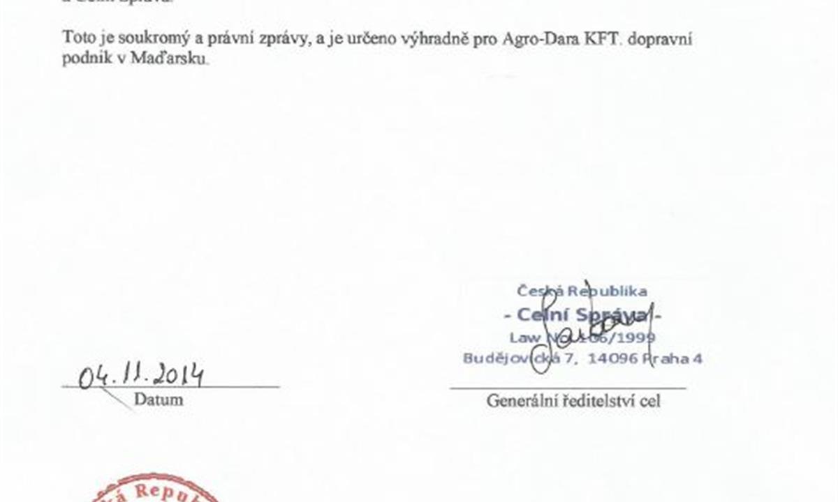 obsahu informací, tak použitými podpisy, razítky i logem celní správy). Účelem