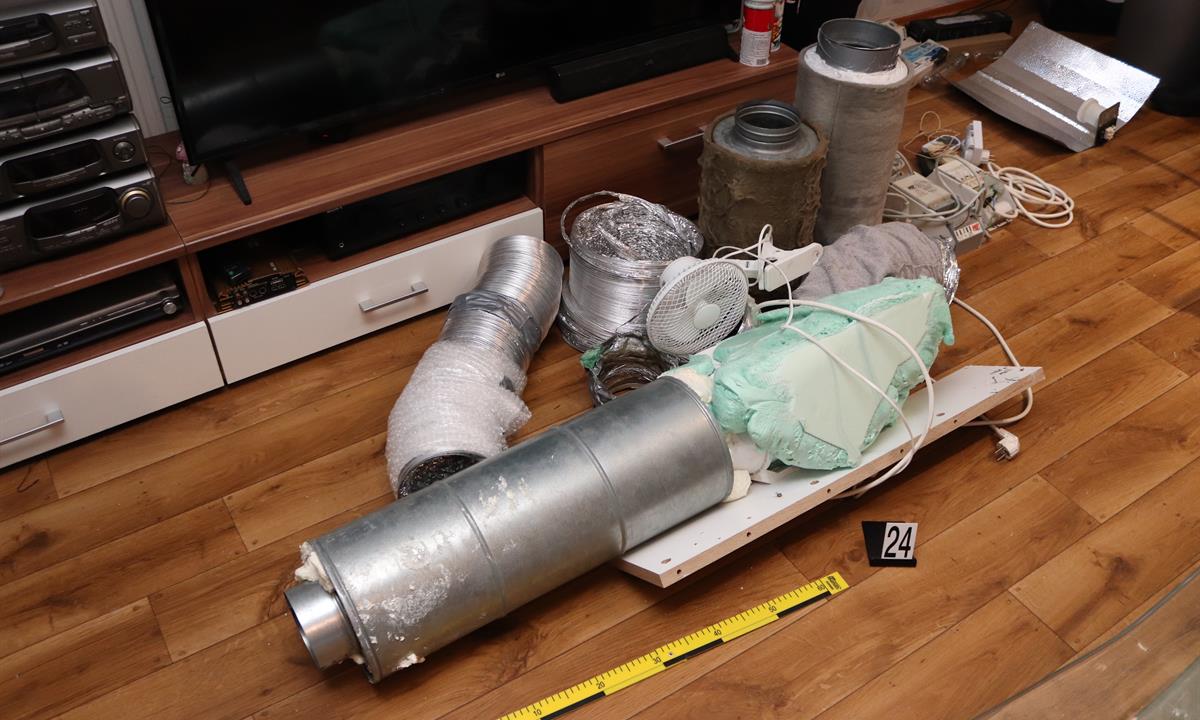 Kriminalisté si odvezli rozebrané vybavení pro dvě kompletní indoor pěstírny, přenosnou varnu metamfetaminu, notebooky, tablety, mobilní telefony, samopal vz. 58, rušičku mobilních telefonů, kolt s náboji…