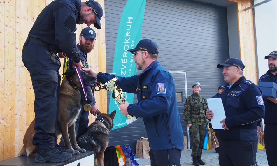 Slavnostní předání ocenění vítězům se uskutečnilo před novou multifunkční kynologickou halou za přítomnosti plk. Petra Koutného, náměstka ředitele Služby pořádkové policie Policejního prezidia.
