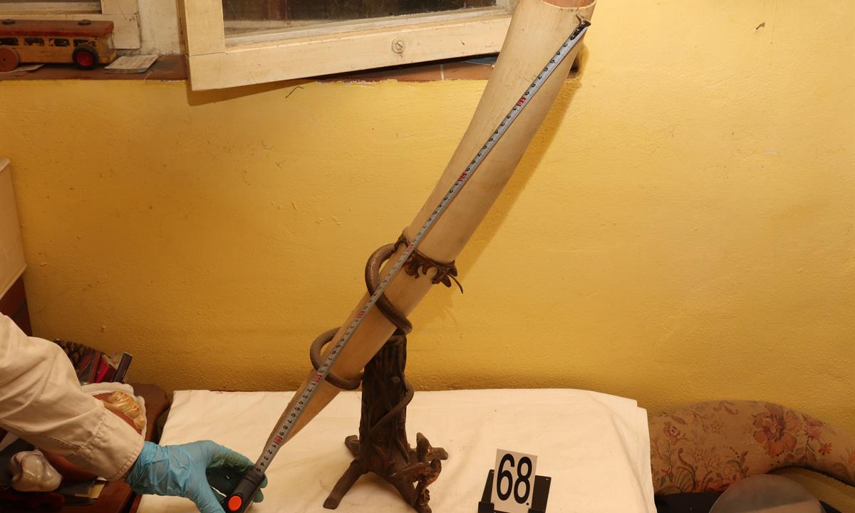 Při středeční závěrečné razii s krycím názvem „OLIFANT“ zajistili celníci plzeňského Odboru pátrání Generálního ředitelství cel dva sloní kly, několik desítek artefaktů ze slonoviny, finanční hotovost ve výši 25 000 Kč a další důkazní materiál.