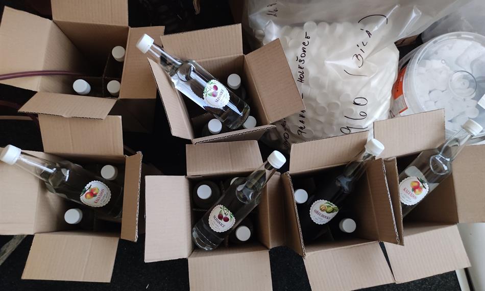 Kolegové z oddělení dohledu nad subjekty celních úřadů pro hl. m. Prahu a Středočeský kraj v provozovnách objevili 85 lahví lihovin o celkovém objemu 45,2 litrů, označených jako různé typy ovocných pálenek. Vzhledem k tomu, že lahve nebyly opatřeny kontrolní páskou, porušil prodejce zákon o povinném značení lihu.